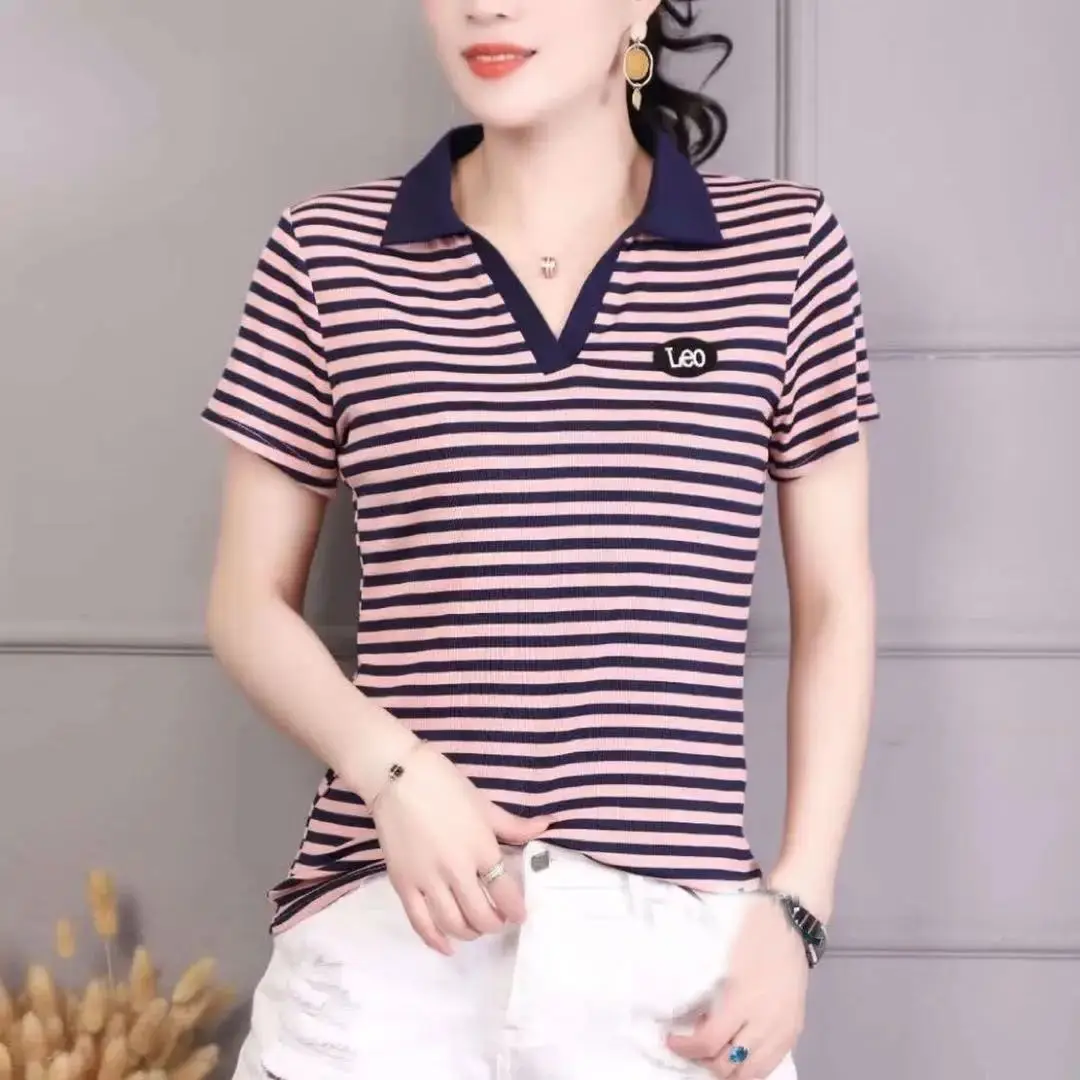 Polo shirt – Pink Stripes, L