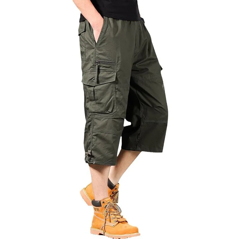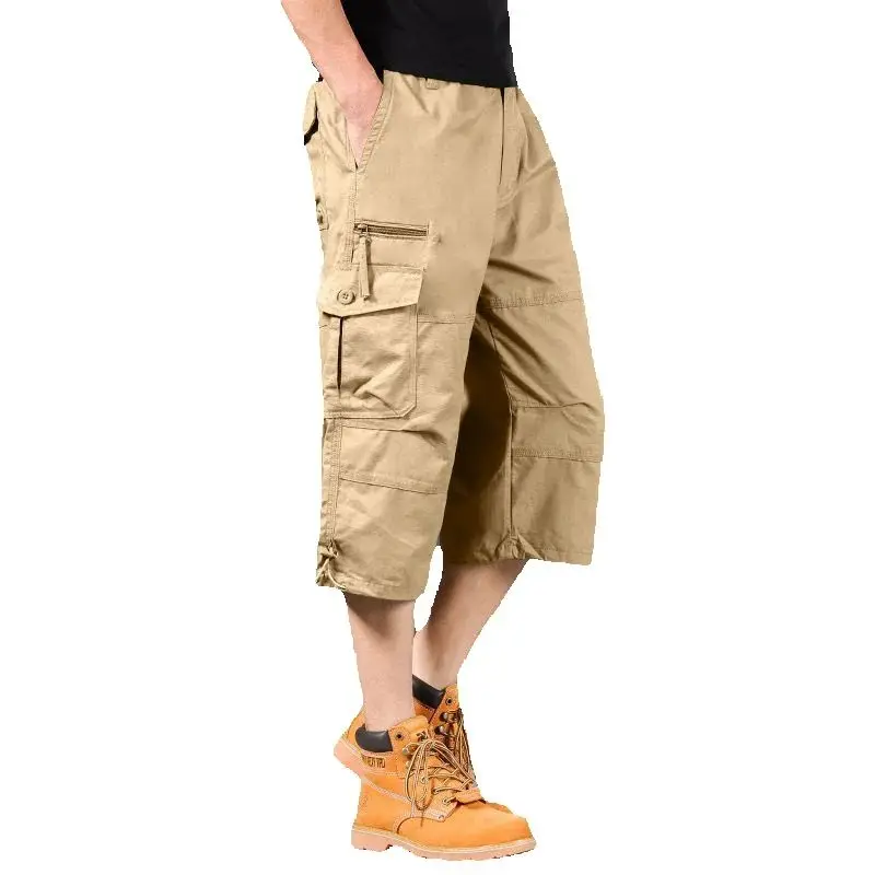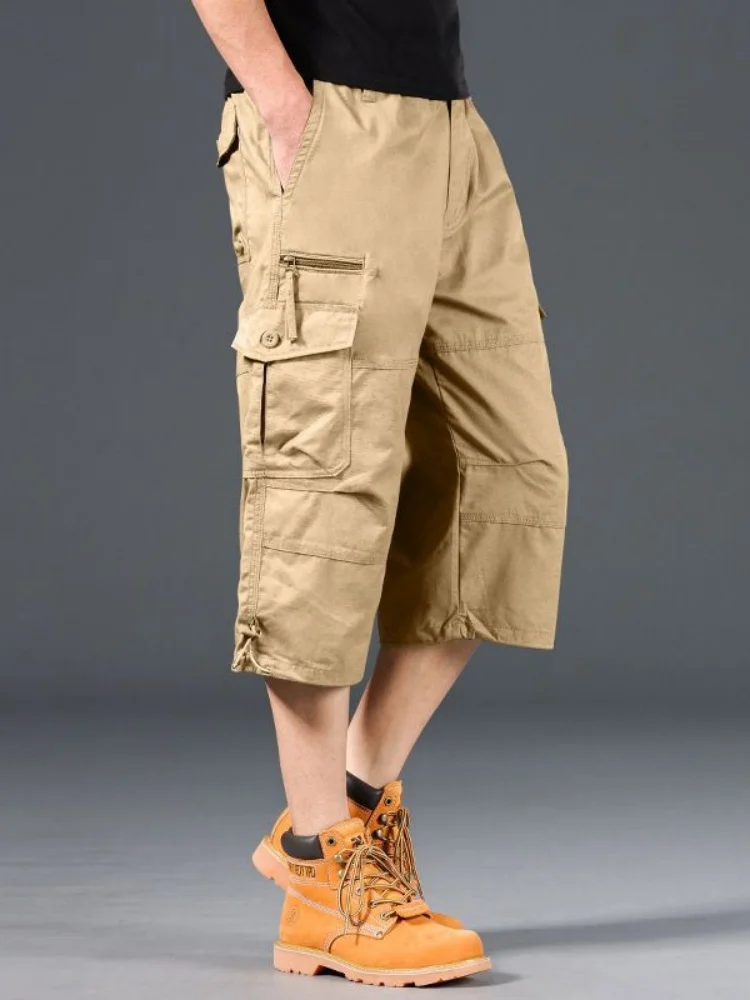 2025 New Men’s Cargo Shorts Summer Loose Casual Pants Elastic Waist Large Size Outdoor Jogging Sweatpants Trend Multi Pockets
