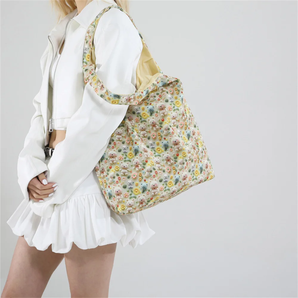 Sweet Floral Shoulder Bag Women’s Large Capacity Handbags Purse Female Hand Tote Bag Travel Shopper Bag 2025